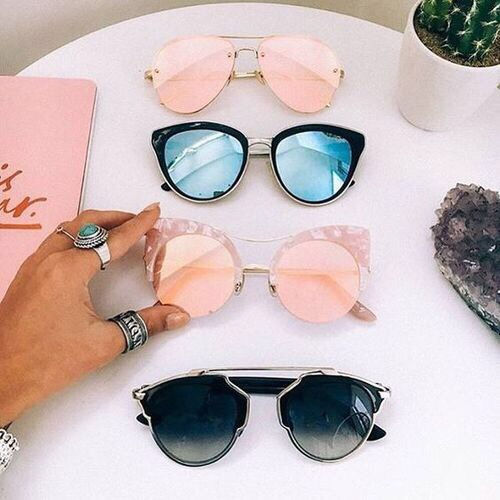 Zonnebrillen... Duuh. Ik zou zonder mijn zonnebril de zomer echt niet doorkomen. Met hoeden zweet je hoofd altijd zo. Ik hou van hoeden, ik vind ze echt heel elegant, maar in de zomer heb ik liever gewoon een paardenstaart in zodat ik niet doodga van de hitte.